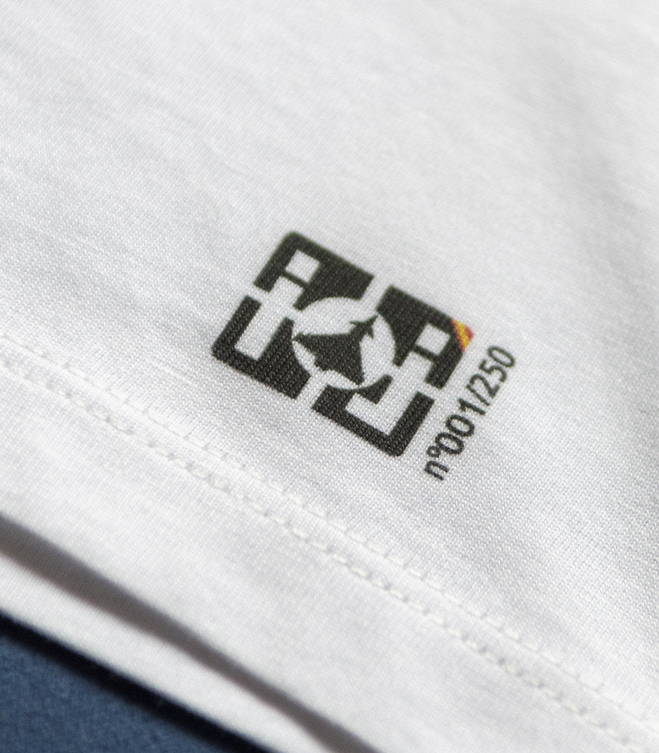 Edición limitada a 250 unidades con certificado de autenticidad firmado por el fotógrafo aeronáutico Ismael Jordá y etiqueta numerada en prenda. ¡No hay dos camisetas iguales!