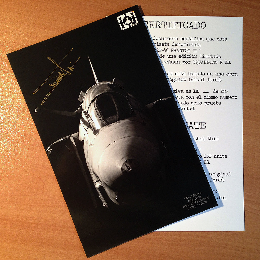 Edición limitada a 250 unidades con certificado de autenticidad firmado por el fotógrafo aeronáutico Ismael Jordá y etiqueta numerada cosida en prenda. ¡No hay dos camisetas iguales!.