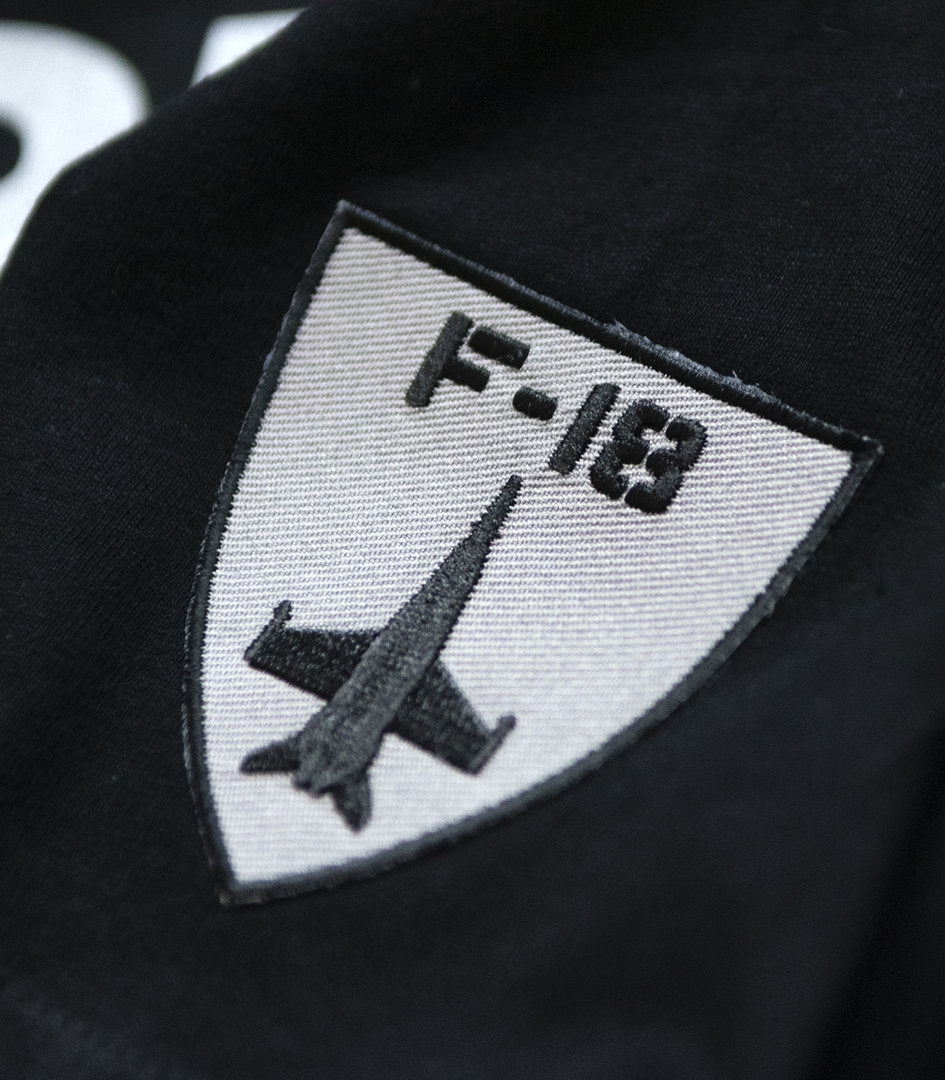 En la espalda tiene impresa la fotografía en la que está basada la camiseta, un retrato en blanco y negro del F-18 , impreso en "HD print", una tecnología que es capaz de resaltar hasta el último remache.