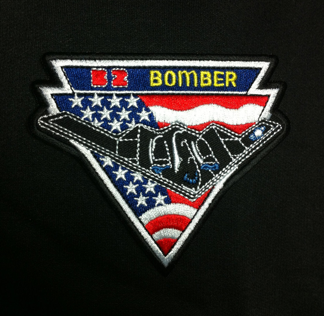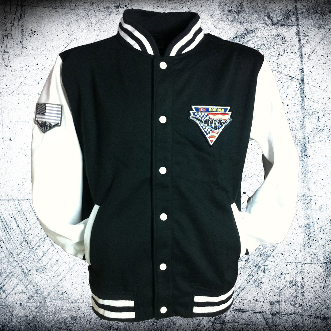 Cazadora Universitaria de felpa. Con aplicaciones bordadas de alta calidad con motivos del B-2 Spirit.