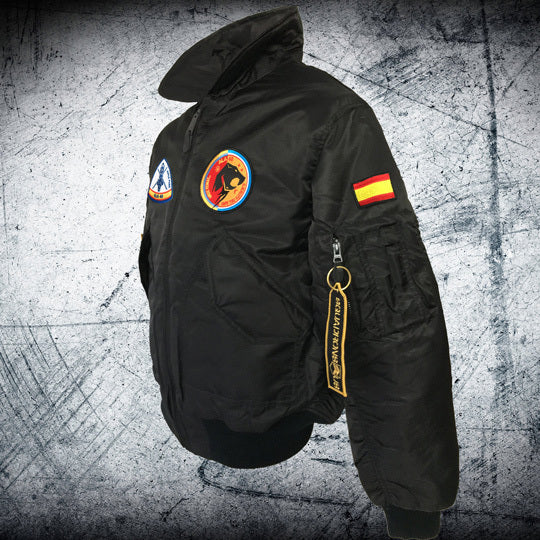 - REGALO: Llavero bordado REMOVE BEFORE FLIGHT SquadronsRus. - 100% Nylon interior y exterior con capa impermeable. - Cremallera central metálica de máxima resistencia. - 2 bolsillos exteriores con cierre de velcro. - Bolsillo con portabolígrafos en hombro izquierdo. - Elásticos en mangas y cintura. - Prenda de abrigo de máxima calidad y durabilidad, adaptada a un uso intensivo.