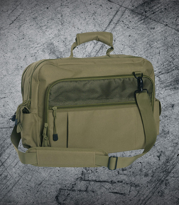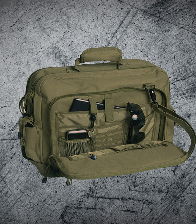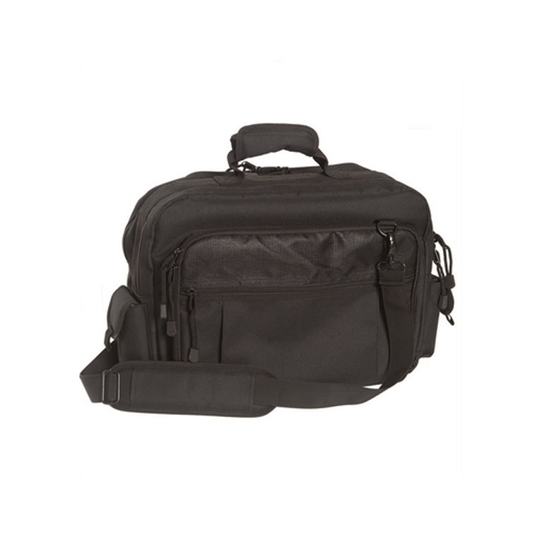Funcional maletín con asas y bandolera de transporte, repleto de bolsillos multiusos. Ideal para transportar documentos y un ordenador portátil con total seguridad.